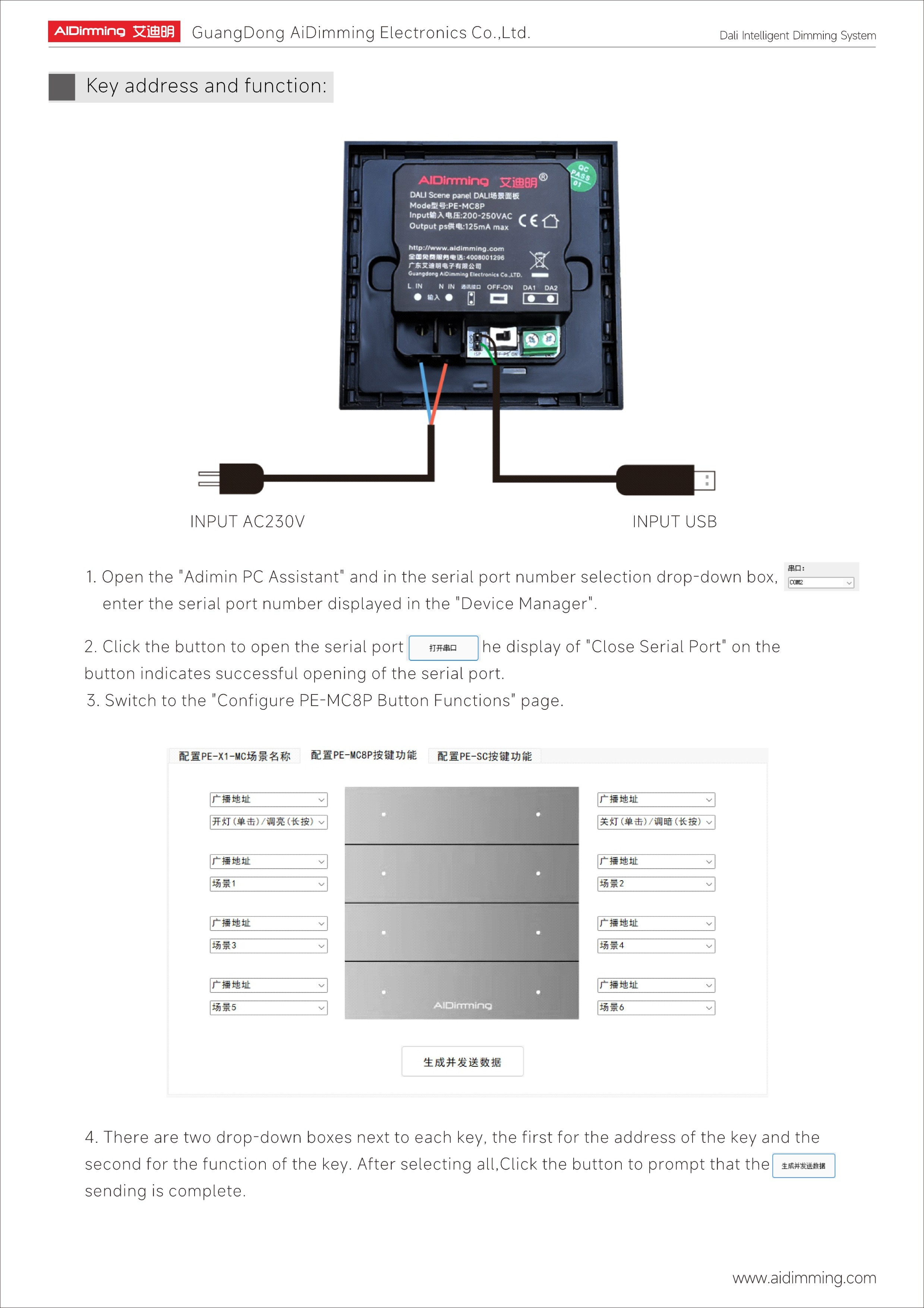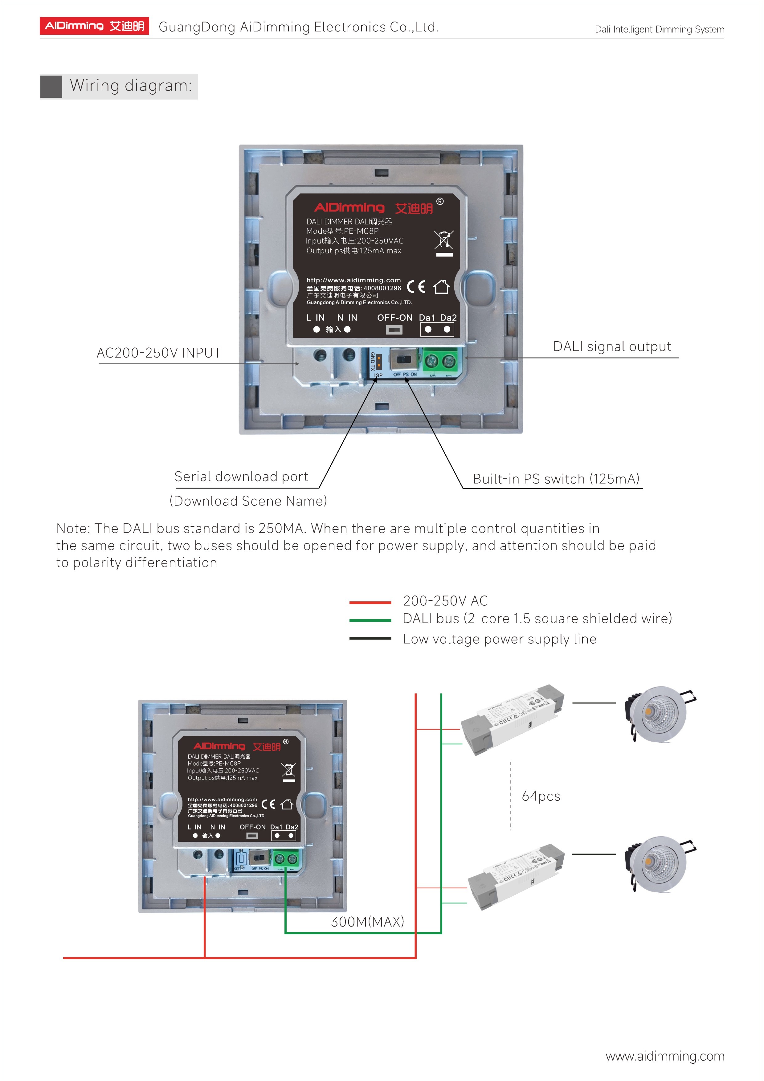 The AiDiming PE-MC8P (V2) is a robust DALI scene control panel designed to deliver professional-grade lighting automation. Equipped with 8 premium 5.8 aluminum alloy solid buttons and a customizable scene interface, this controller integrates seamlessly into DALI networks for both residential and commercial applications.