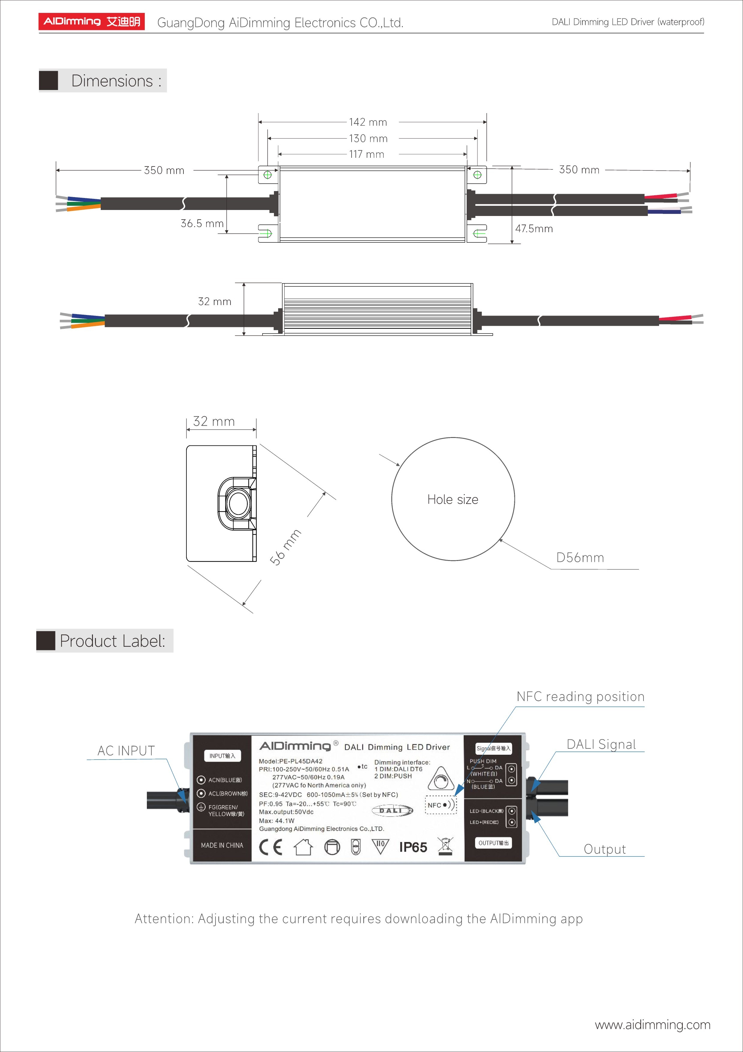 AiDiming PE-PL30DA / PE-PL45DA Waterproof DALI Dimming LED Driver (30W / 45W)