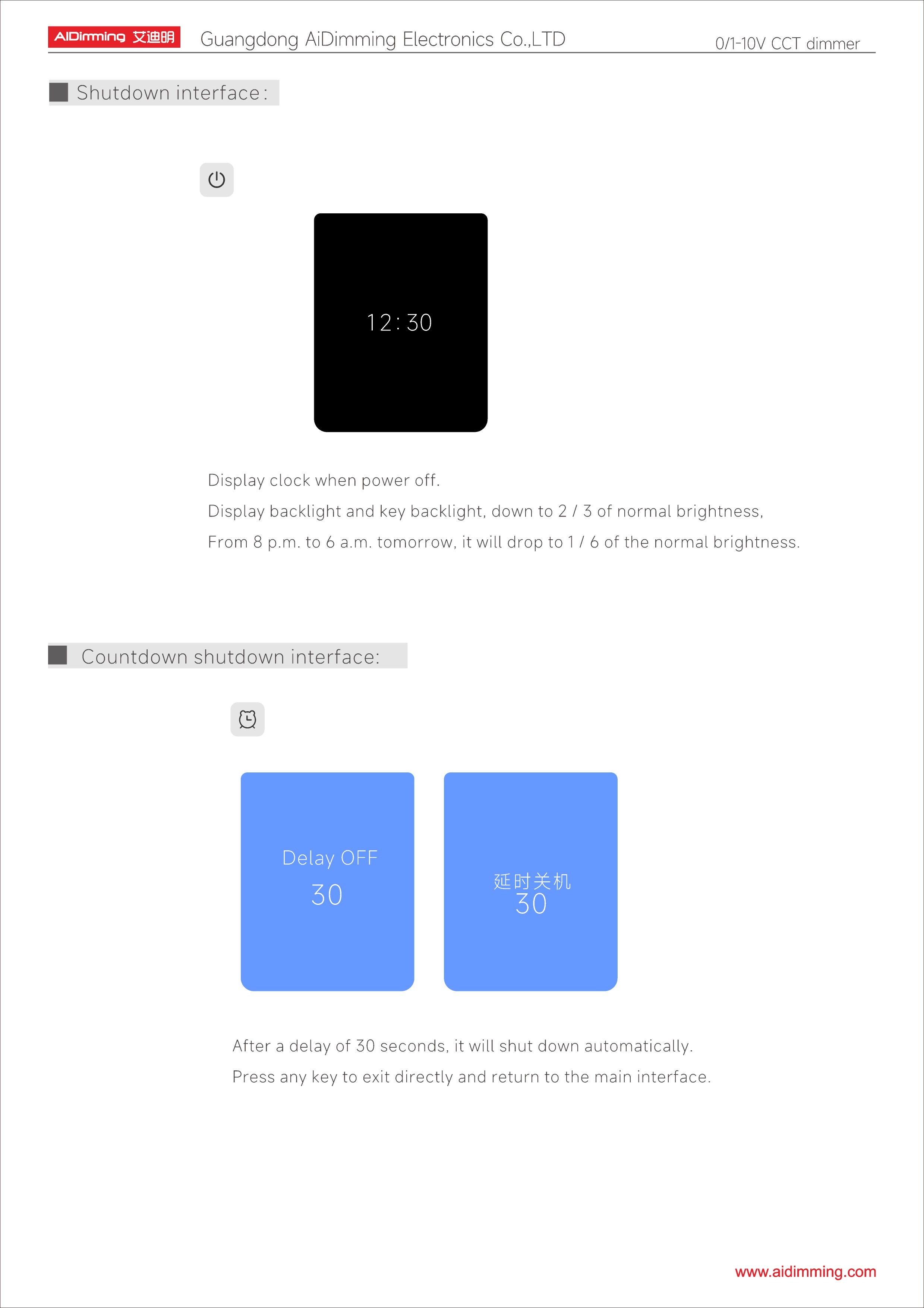 • 30s Auto Power-Off Delay – Energy-saving switch-off function