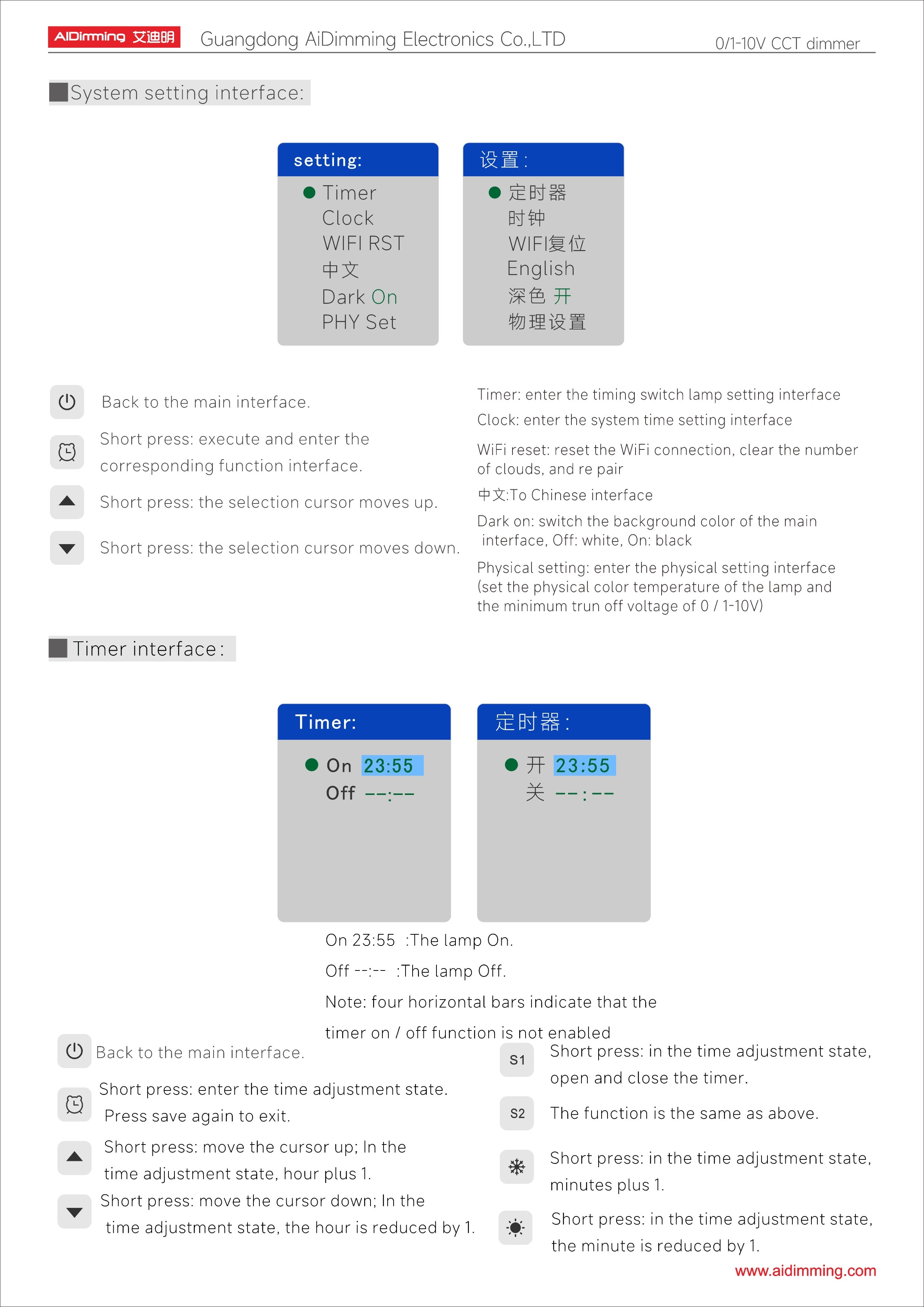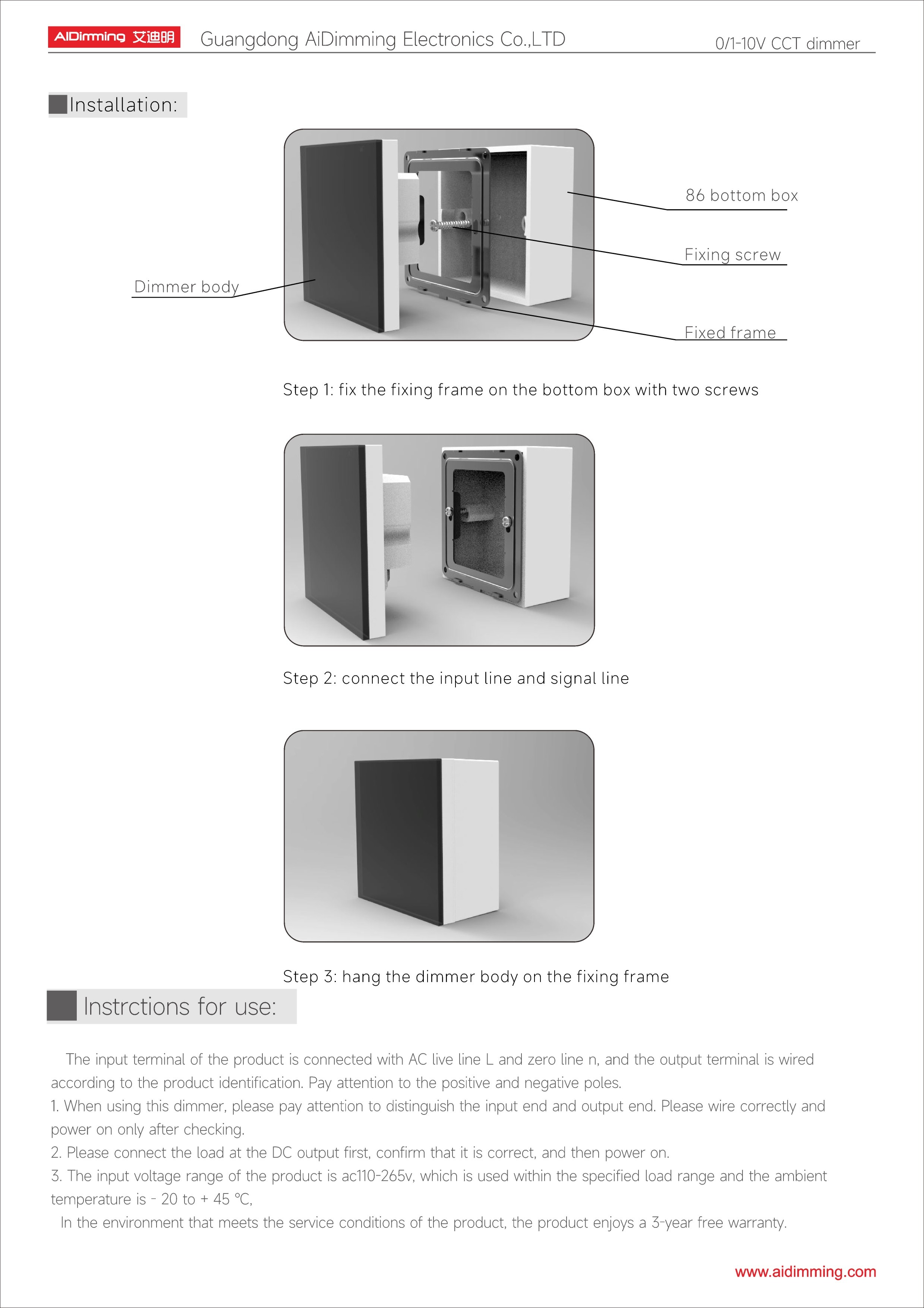 • Dimming Range: 0–100%