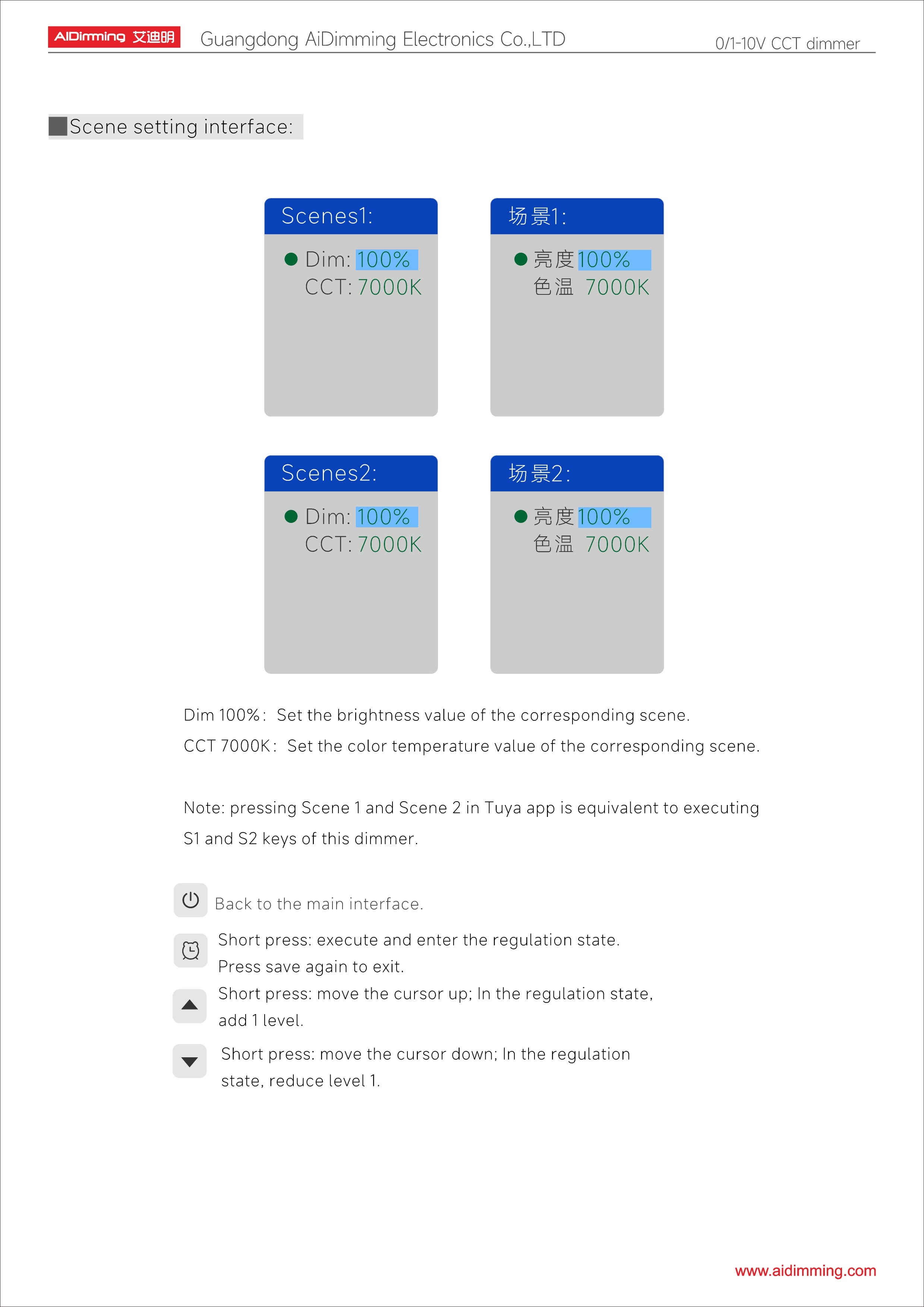 • Scene Control: Supports 2 scenarios