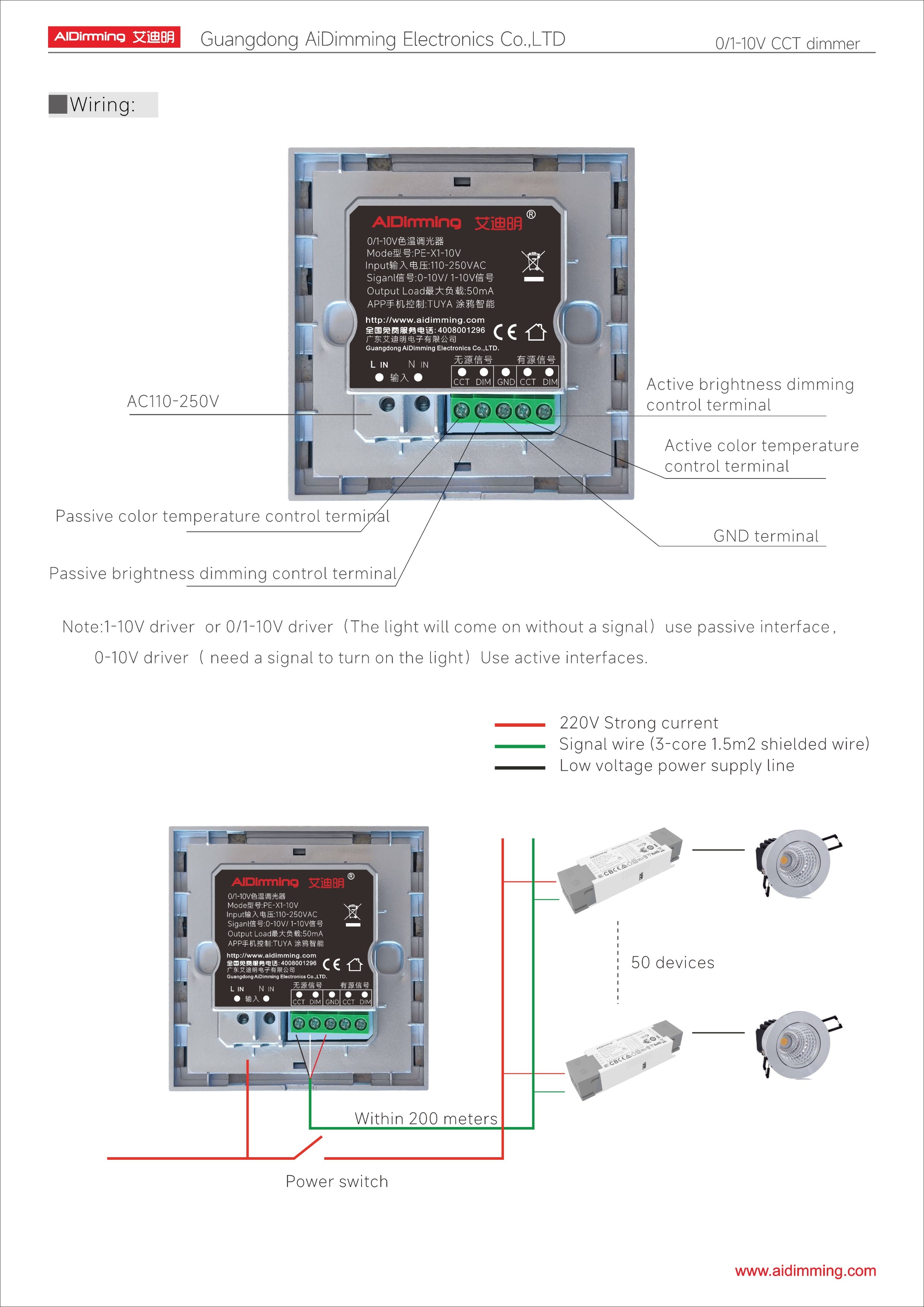 AiDiming PE-X1-10V Smart Control Panel – 0/1-10V Dimming & CCT Touch Controller with TUYA App and Voice Support
