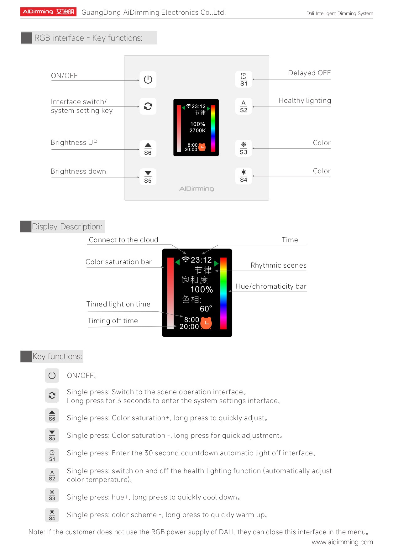 The AiDiming PE-X1-MC (V5) is a compact yet powerful intelligent DALI control panel tailored for smart lighting environments. Designed for compatibility with dual-color, monochrome, and RGBCW DALI drivers, this controller blends practical features with sleek aesthetics.