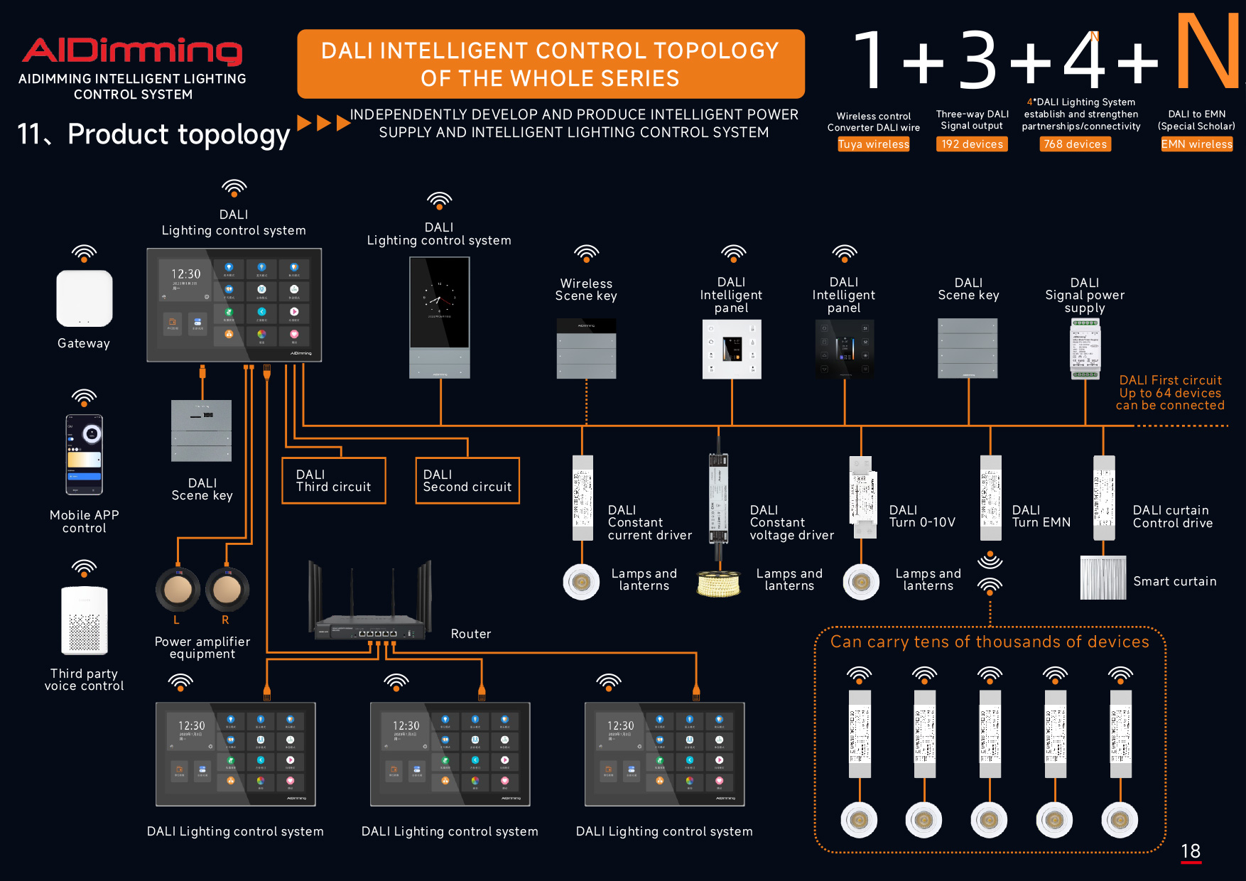 It supports RGB, RGBW, and RGBCW lighting with adjustable color temperature, scene customization, intelligent linkage, and both voice and mobile app control. Designed for high-end homes and commercial environments, it supports intranet and ZigBee wireless communication, making smart lighting setup simple and flexible.