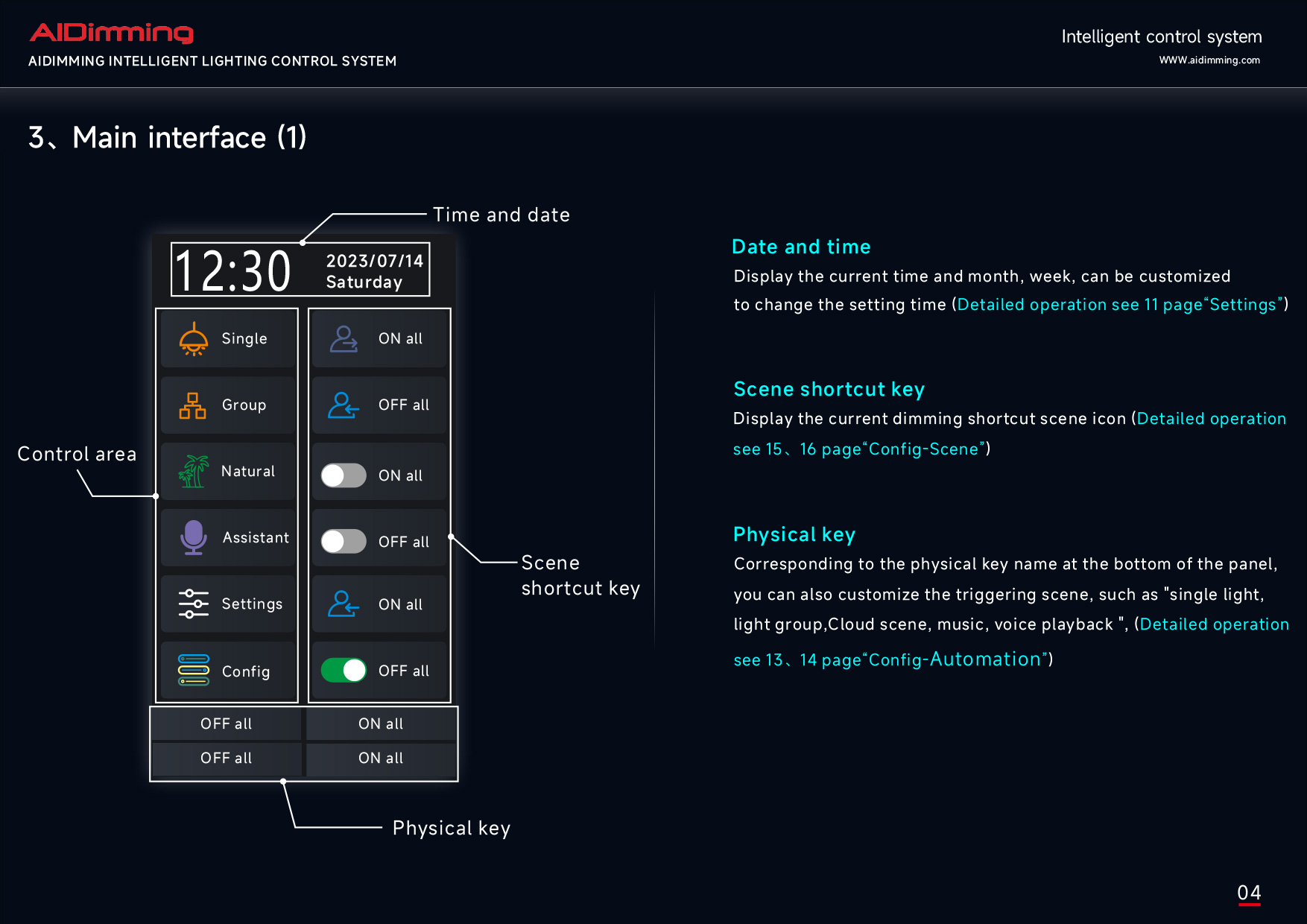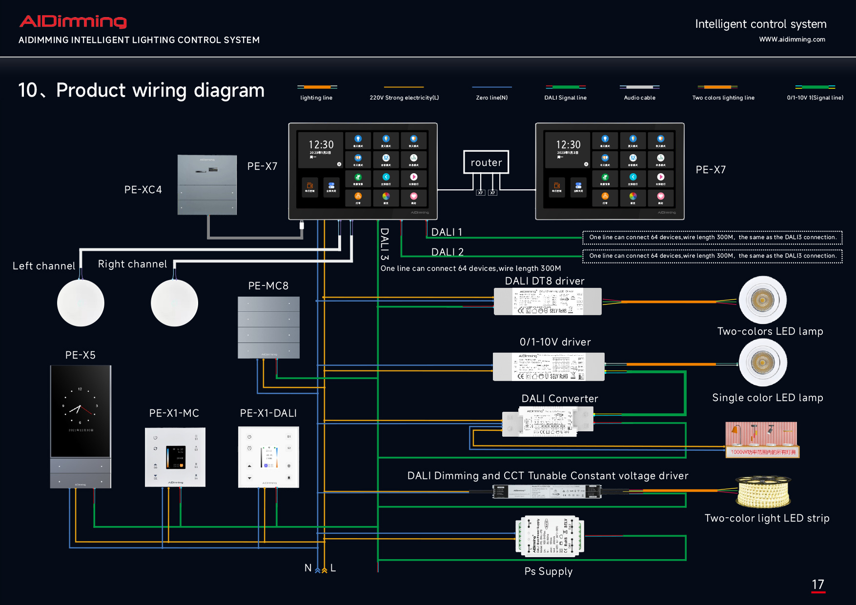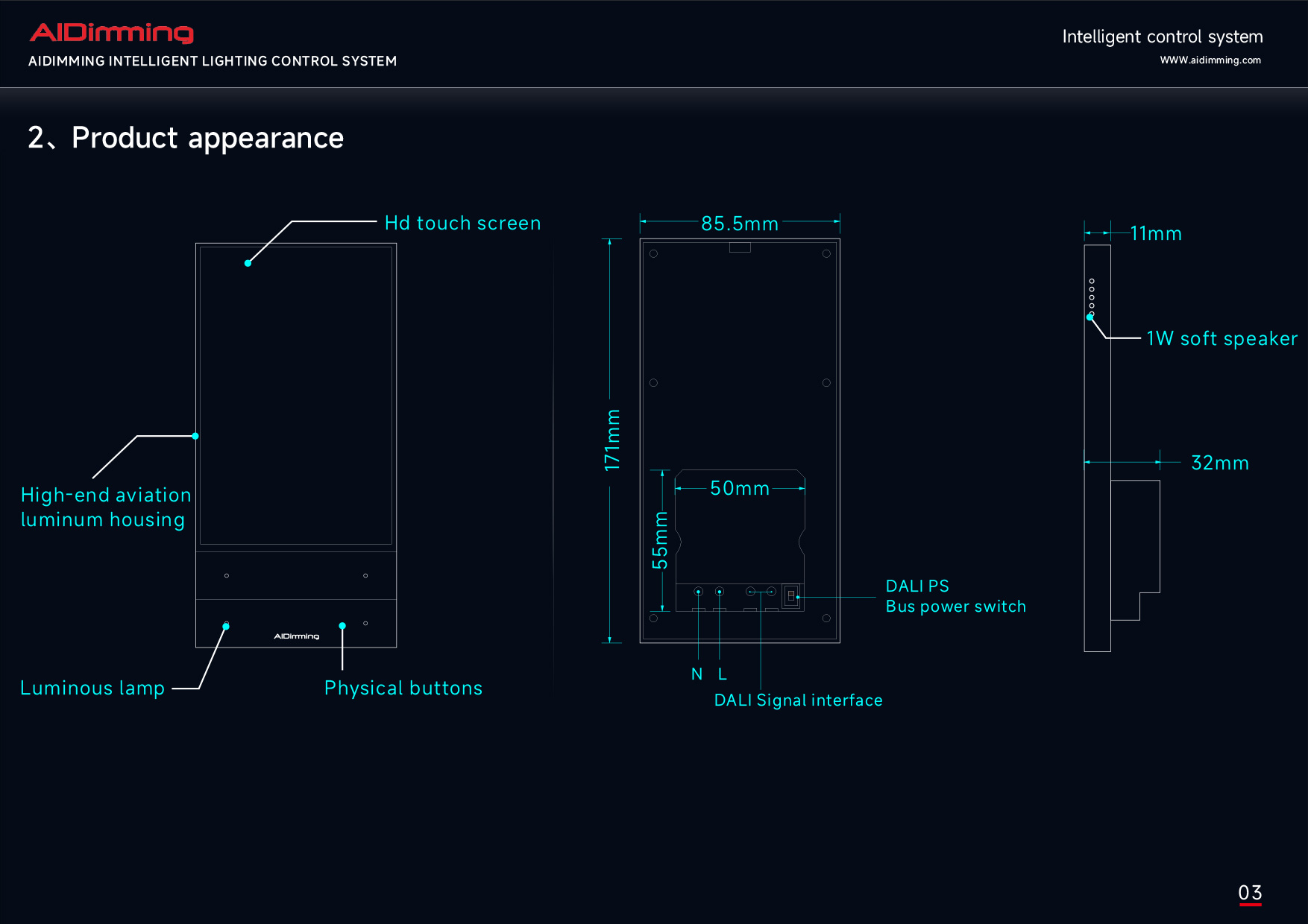 The AiDiming PE-X5 is an advanced smart lighting control panel engineered to provide seamless and stable DALI digital lighting management. With a sleek 5.0-inch HD capacitive touchscreen and aviation-grade metal construction, the PE-X5 combines elegance with powerful functionality.