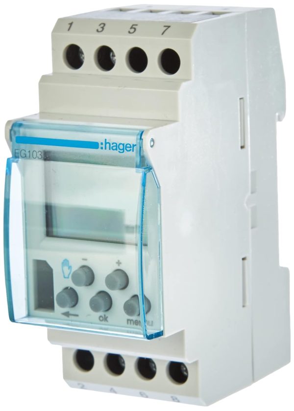 Hager EGN103 Weekly Timer/Counter, Electric – (Grey, Digital buttons, 1 Channel, 16 A)
