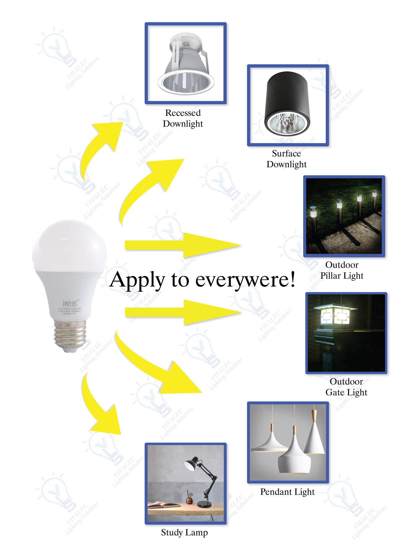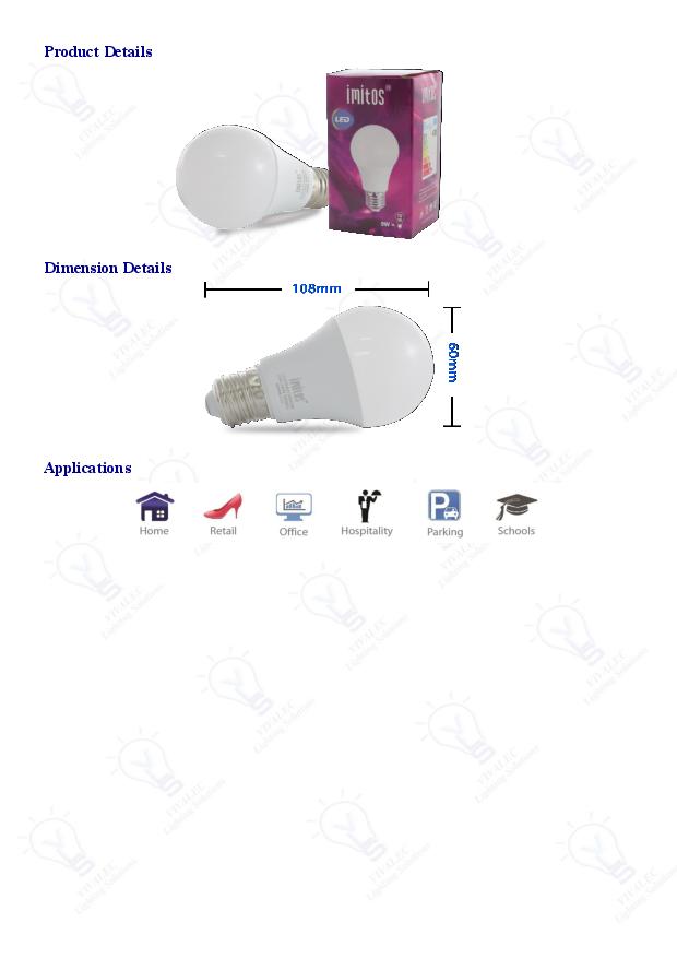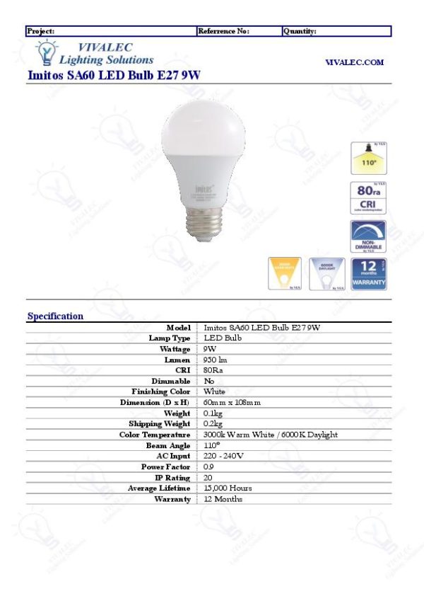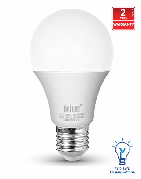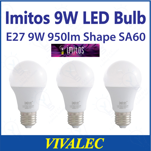 Imitos SA60 LED 9W E27 3000K Warmwhite / 4000K CoolWhite / 6000K Daylight for Recessed Downlight Bulb Replacement (2 Years Warranty)