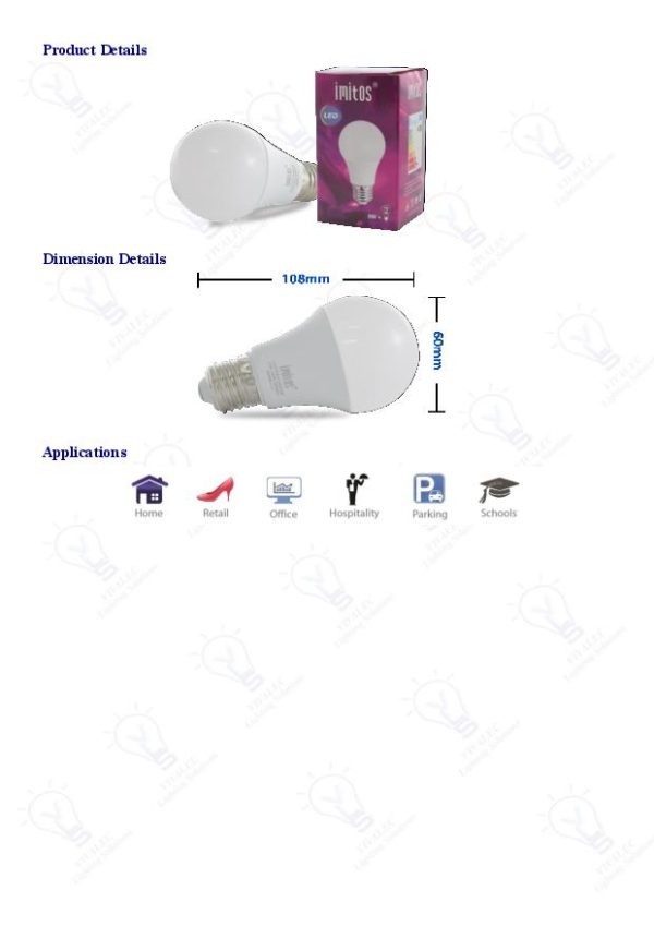 Features: 90% Energy Saving, Durable & Safe, Non-Glaring, Low Temperature, Stable Brightness, Non-Flickering, Long Life, High Luminous.