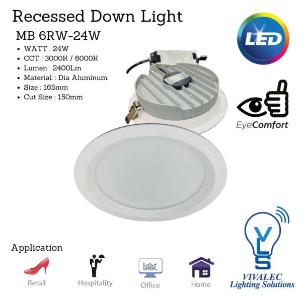 MB 6RW-24W Recessed LED Downlight – Eye Comfort | Vivalec Lighting Solutions