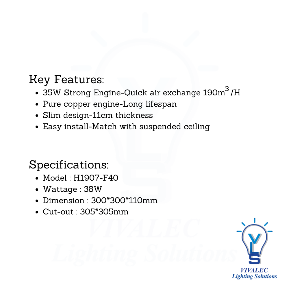 SKU: VLS Bathroom Exhaust Fan H1901-F40 Category: Brand: