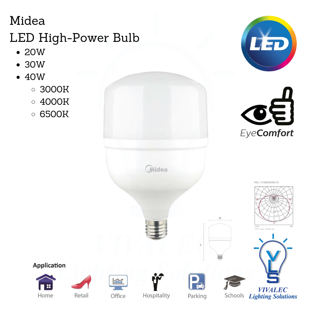 Midea VLS LED HIGH-POWER BULB 20W/30W/40W (3000K/4000K/6500K)