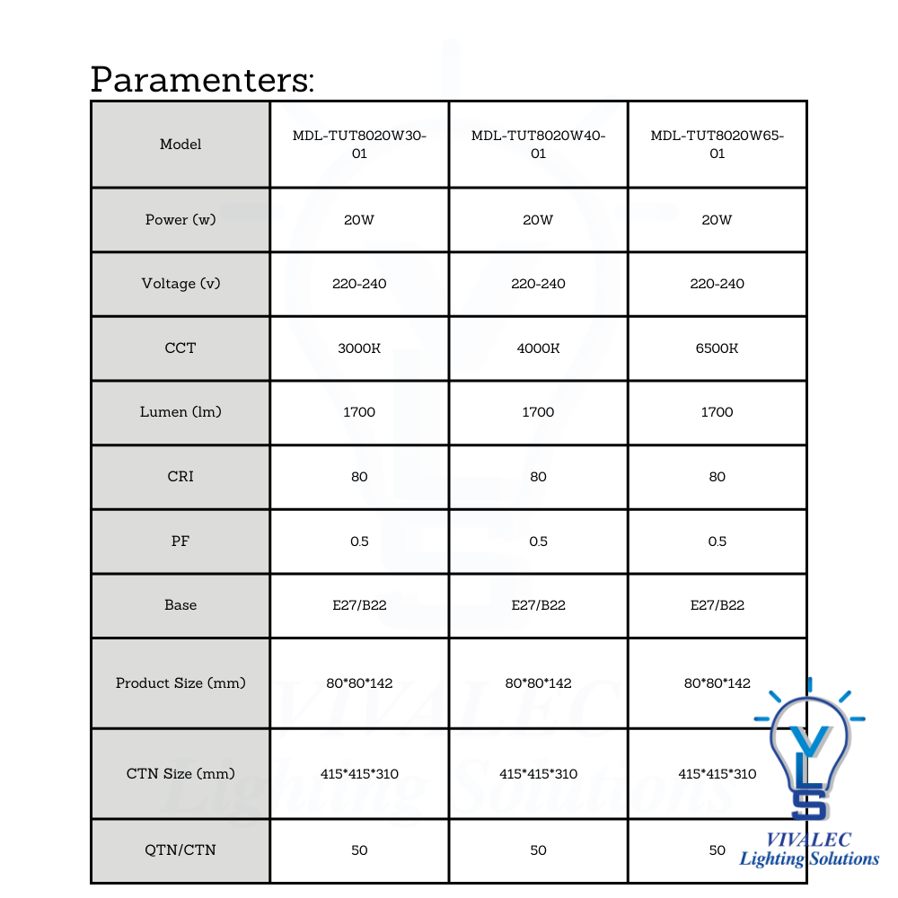 | Model | MDL-TUT8020W30-01 | MDL-TUT8020W40-01 | MDL-TUT8020W65-01 |