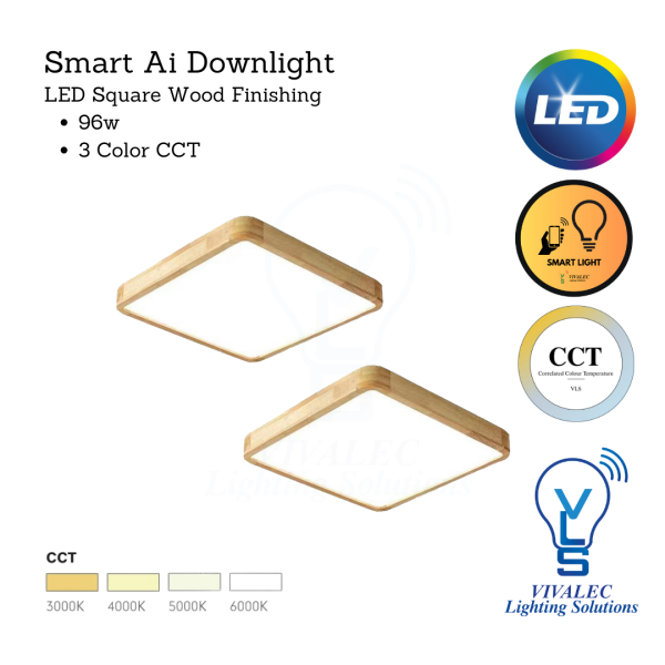 MoiSti Smart Ai LED Surface Light Square Natural Wood Finishing 96w 3C Tuya Controllable Color Temp Changing