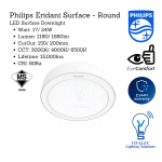 Philips Eridani Round LED Surface Downlight – Single Color, 17W/24W (Multi-CCT Options)