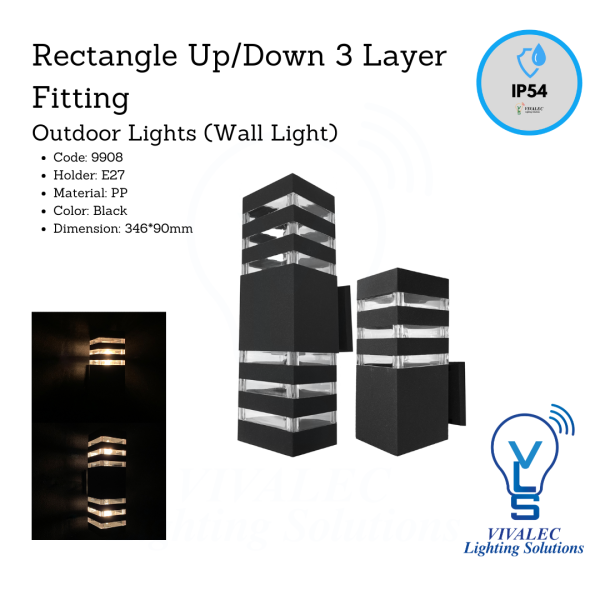 Upgrade your outdoor lighting with the Moisti Rectangle Up/Down 3 Layer Fitting Outdoor Wall Light 9908, offering a perfect blend of style, functionality, and durability.