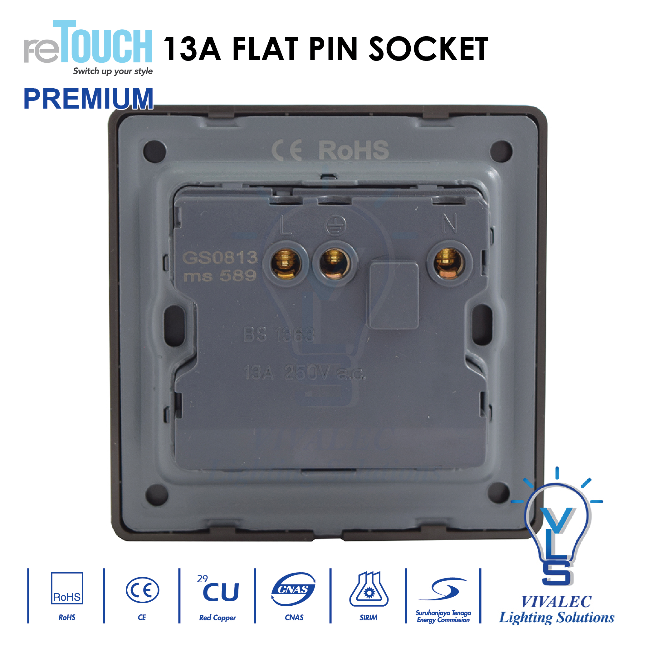 - 13A flat pin socket
