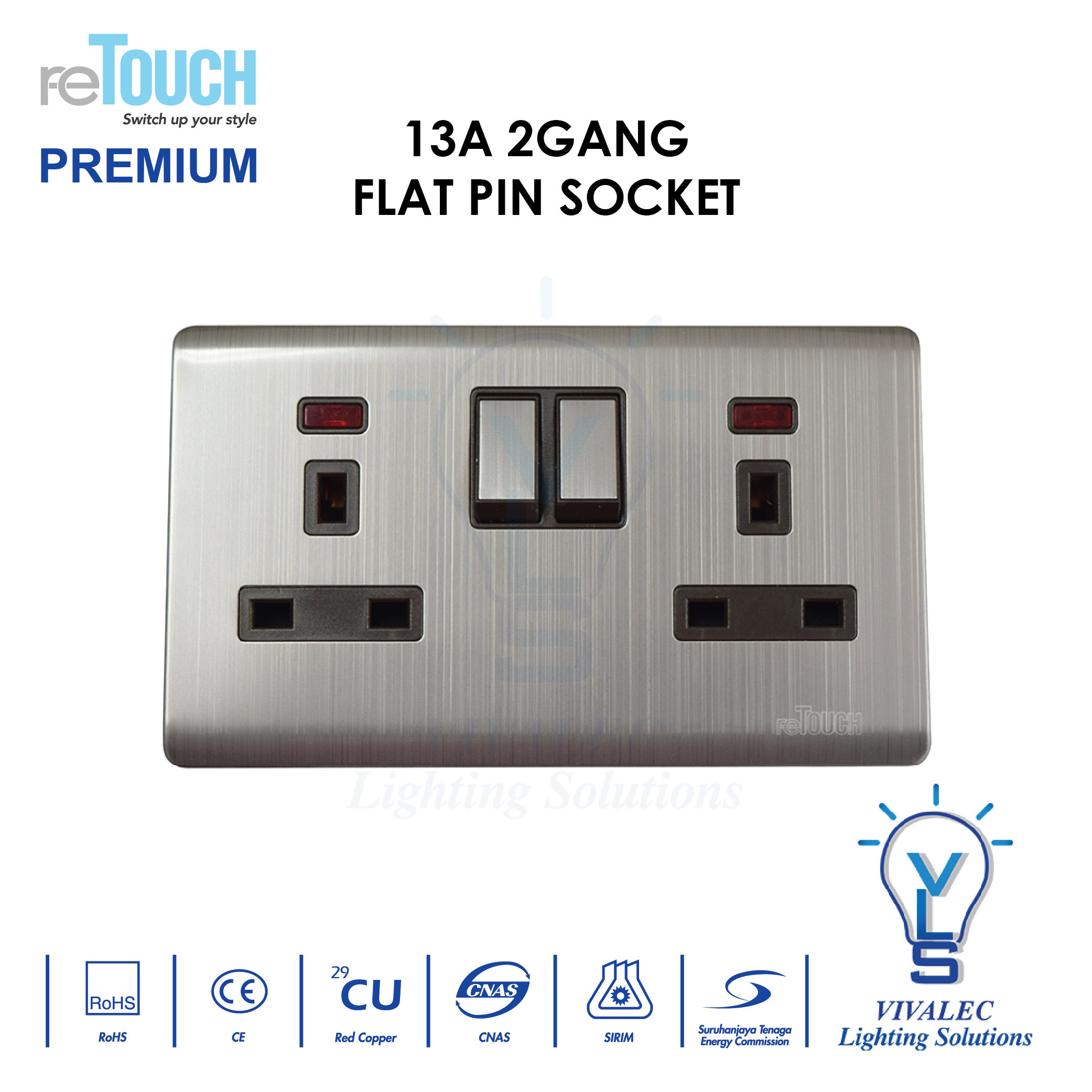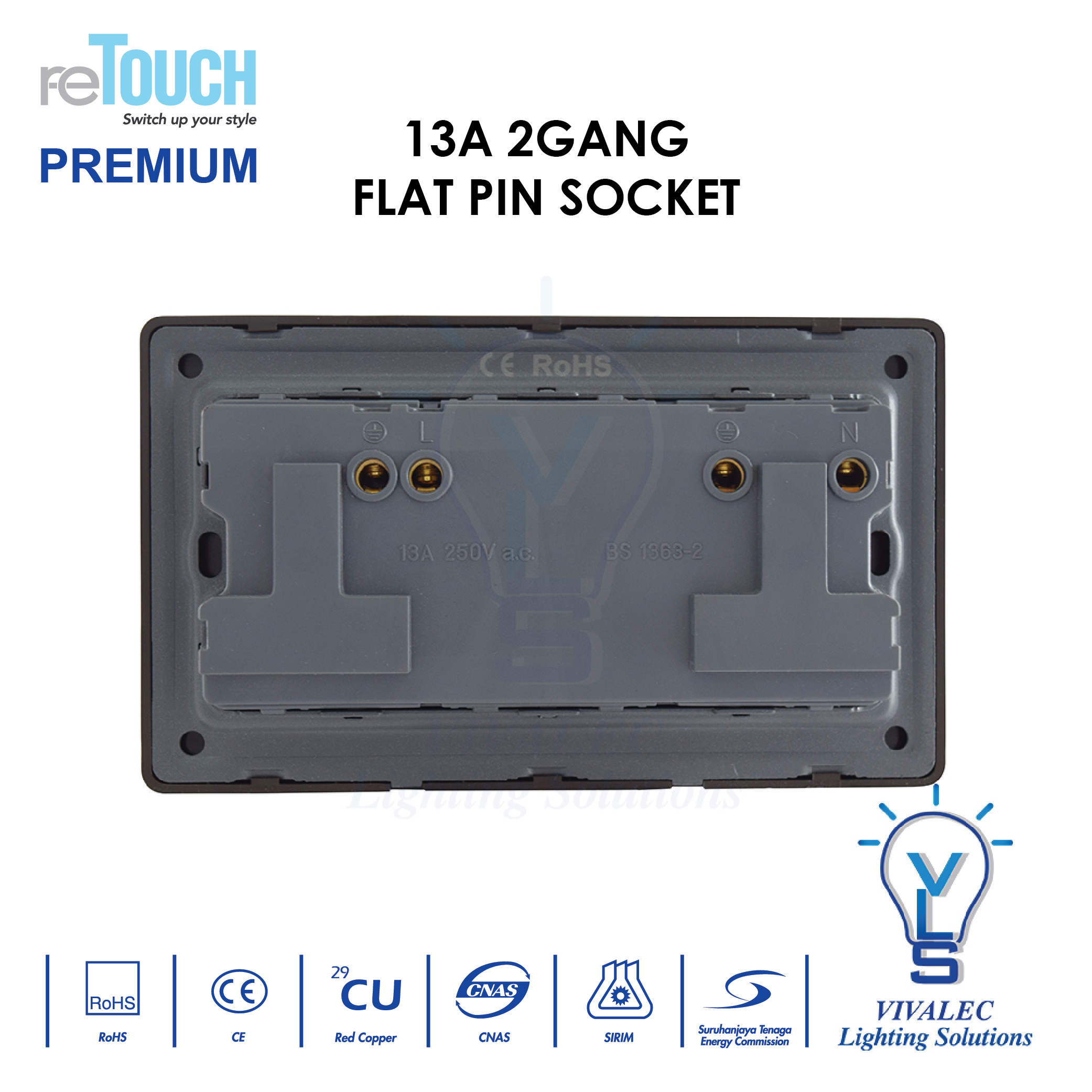 - 2 gang 13A flat pin socket