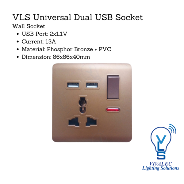 VLS Universal Dual USB Port Wall Socket